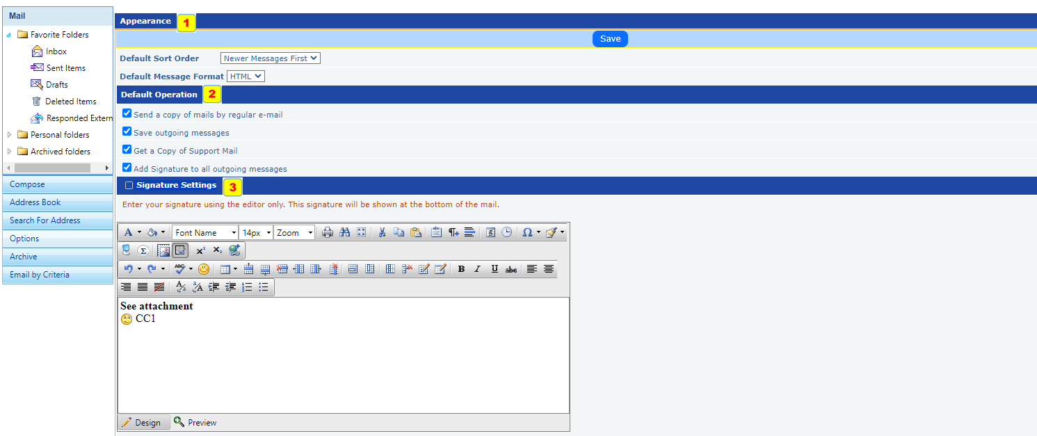 - This option, if enabled, ensures that the user’s signature is automatically appended to all emails.