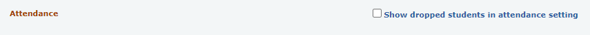 - Attendance (Show dropped students in attendance setting): This option will include the attendance information of the dropped students in the attendance markin/ report options.