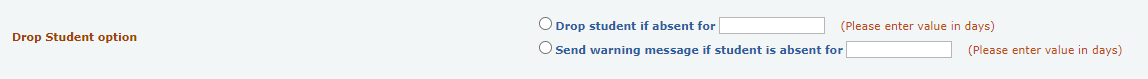 - Drop student if absent for a number of days: Set the number of days to automatically drop students from the section(s) who are absent for a specified number of days.
