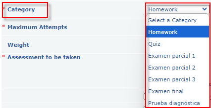 - Select Category: As built in the Grade Book.