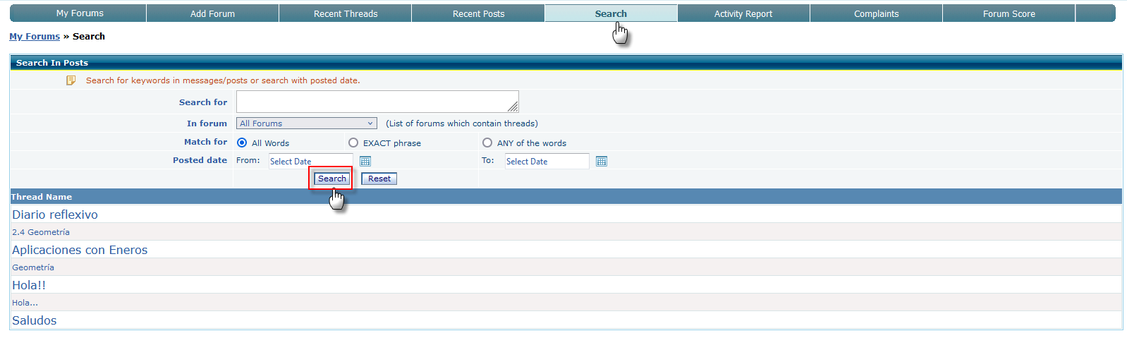 - Search Functionality: Users can use the search bar to find specific threads or posts.