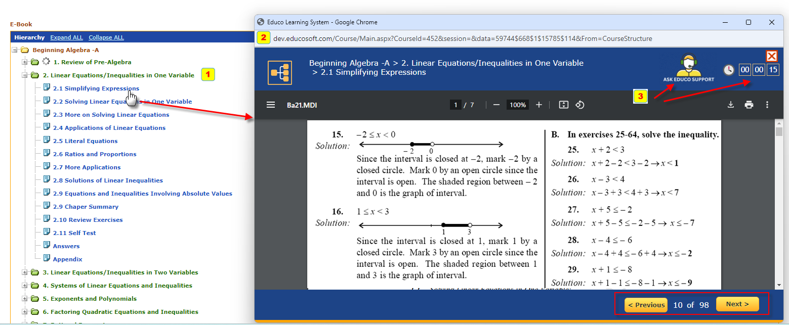 - Time Tracking: A visible timer tracks how long the student has been viewing the e-Solution Manual, for timed reading or session tracking.