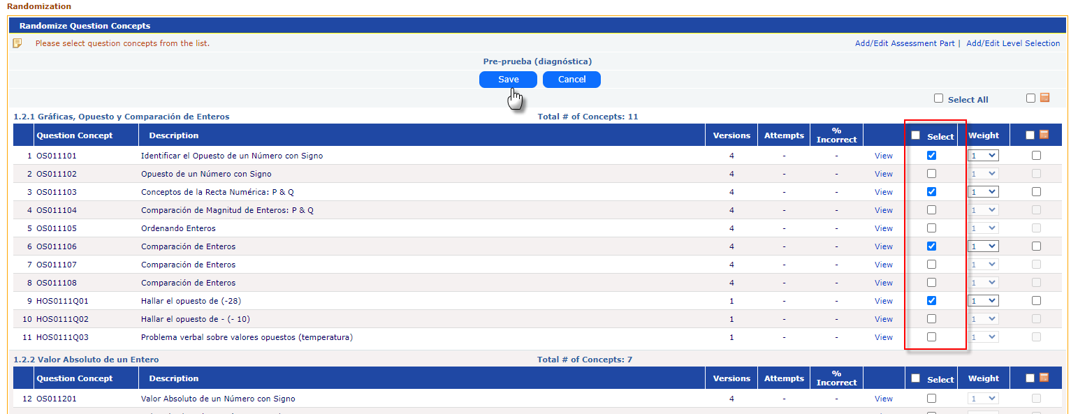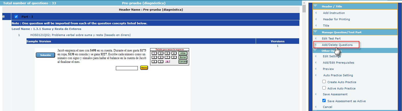 - A new page will open, allowing you to add or edit items within the assessment. Note down the Question Codes for any items you want to delete or replace.