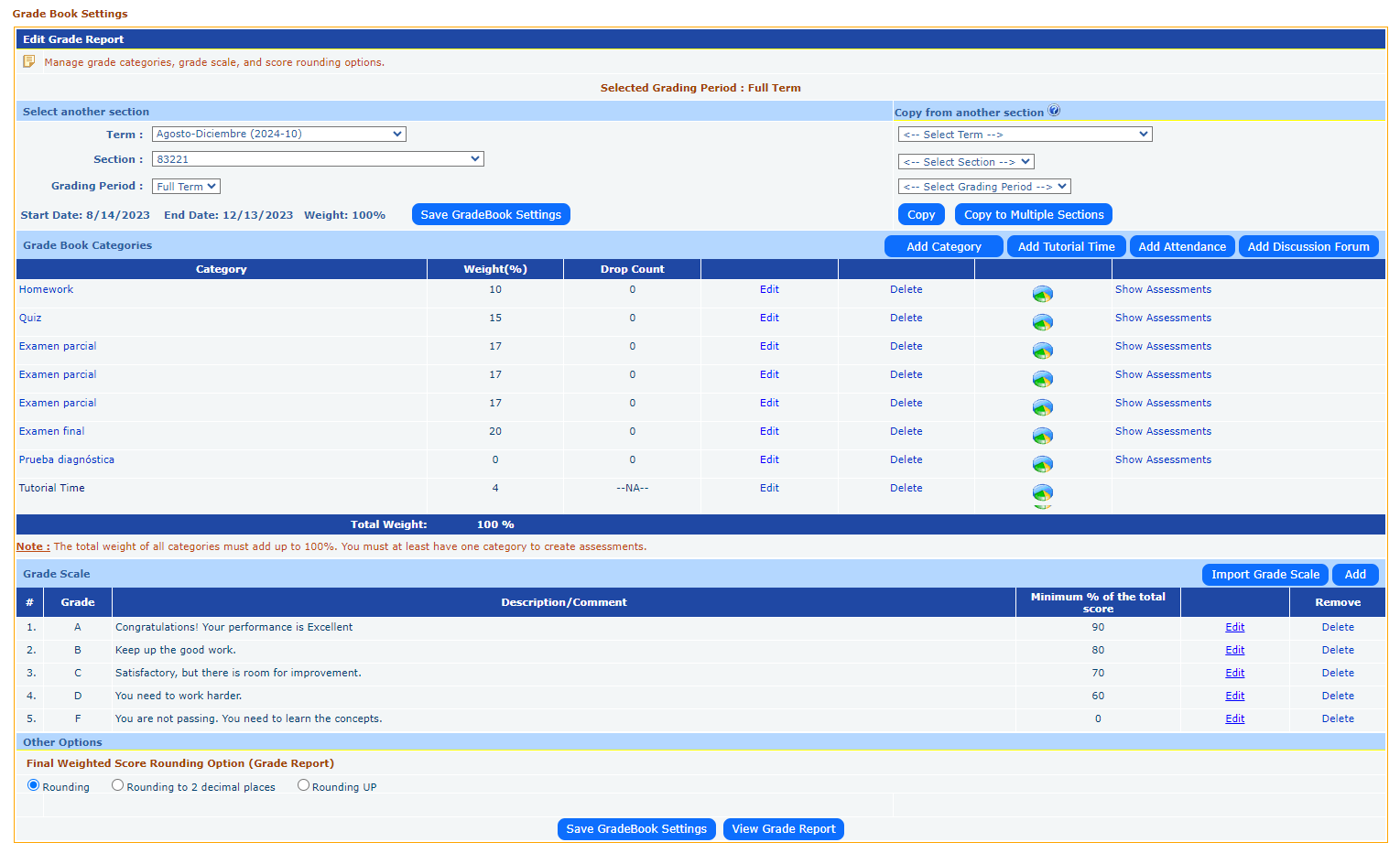 The EducoSoft Grade Book provides a comprehensive system for managing student grades. Instructors can define categories of assessments, assign weights, drop low scores, and customize grade scales. The tool also supports additional functions like attendance tracking and tutorial times to offer a more holistic view of student progress.
