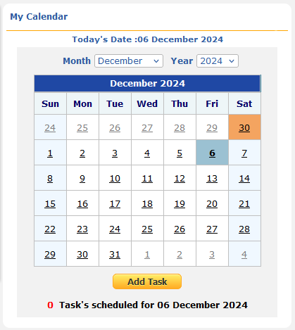 - A calendar on the right side shows the current date and any scheduled tasks for the day.