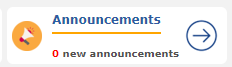 - Announcements: Displays the number of new announcements (currently none), with the option to manage them.