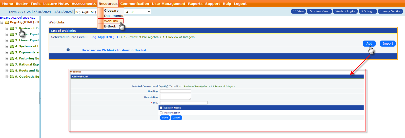 - Title: The name of the weblink (e.g., "Polynomials Video Tutorial").