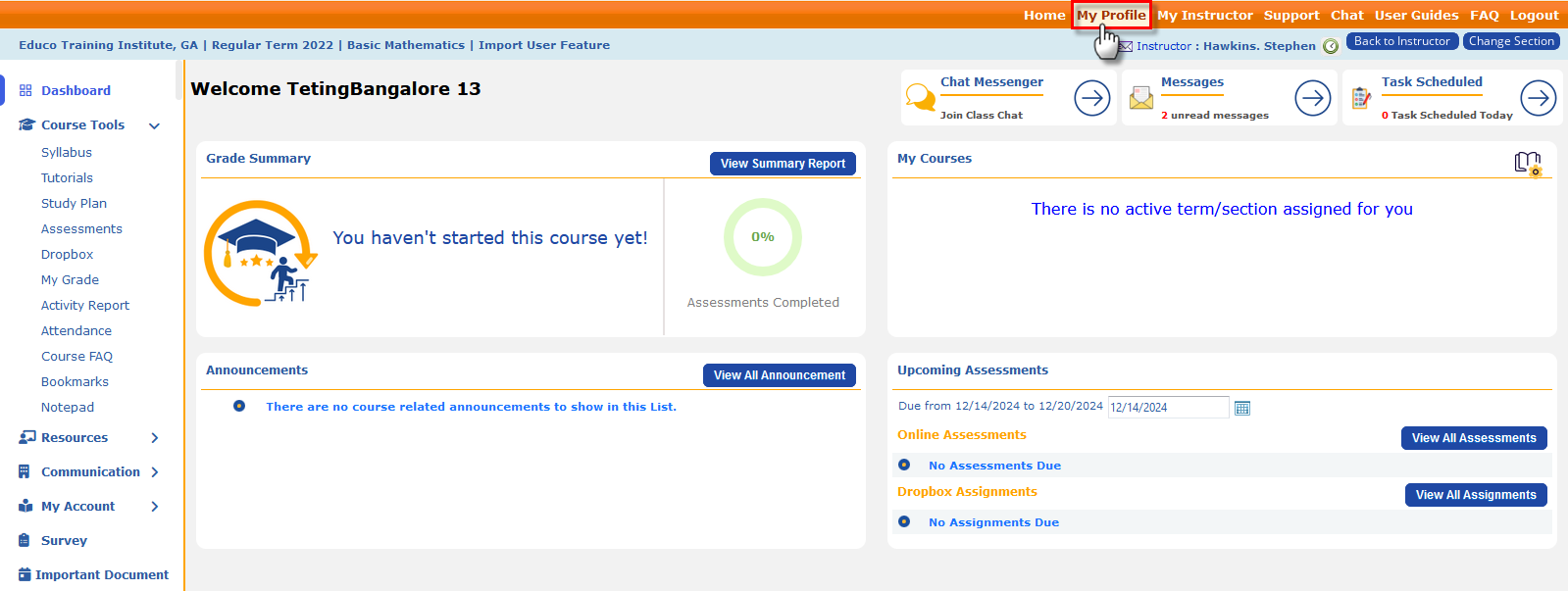 Change Email ID: Click the ‘Change E-Mail Id’ link. A popup appears to change the E-Mail ID.